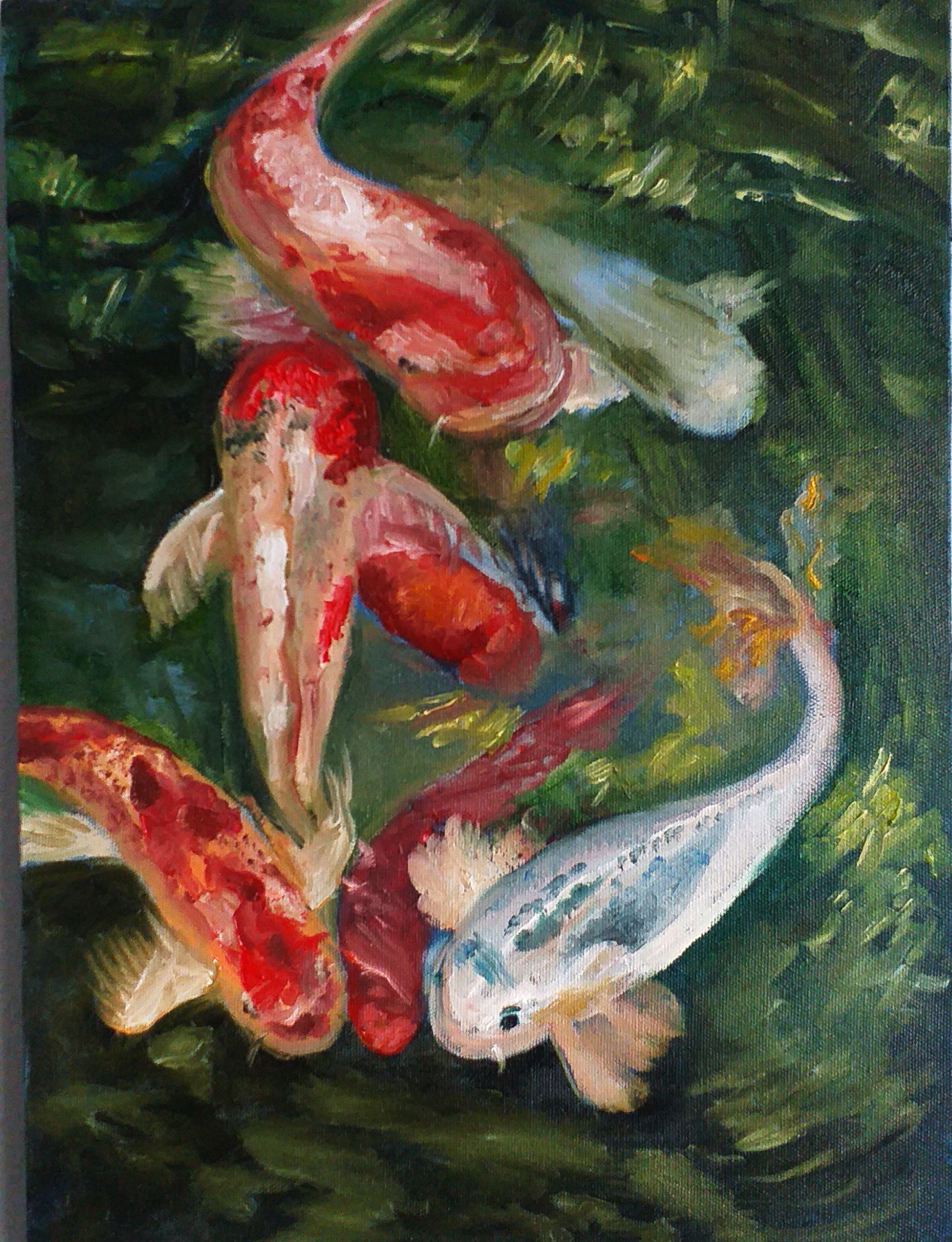 Moon Lit Swim Koi Pond Painting By Kathleen Mcintire Saatchi Art