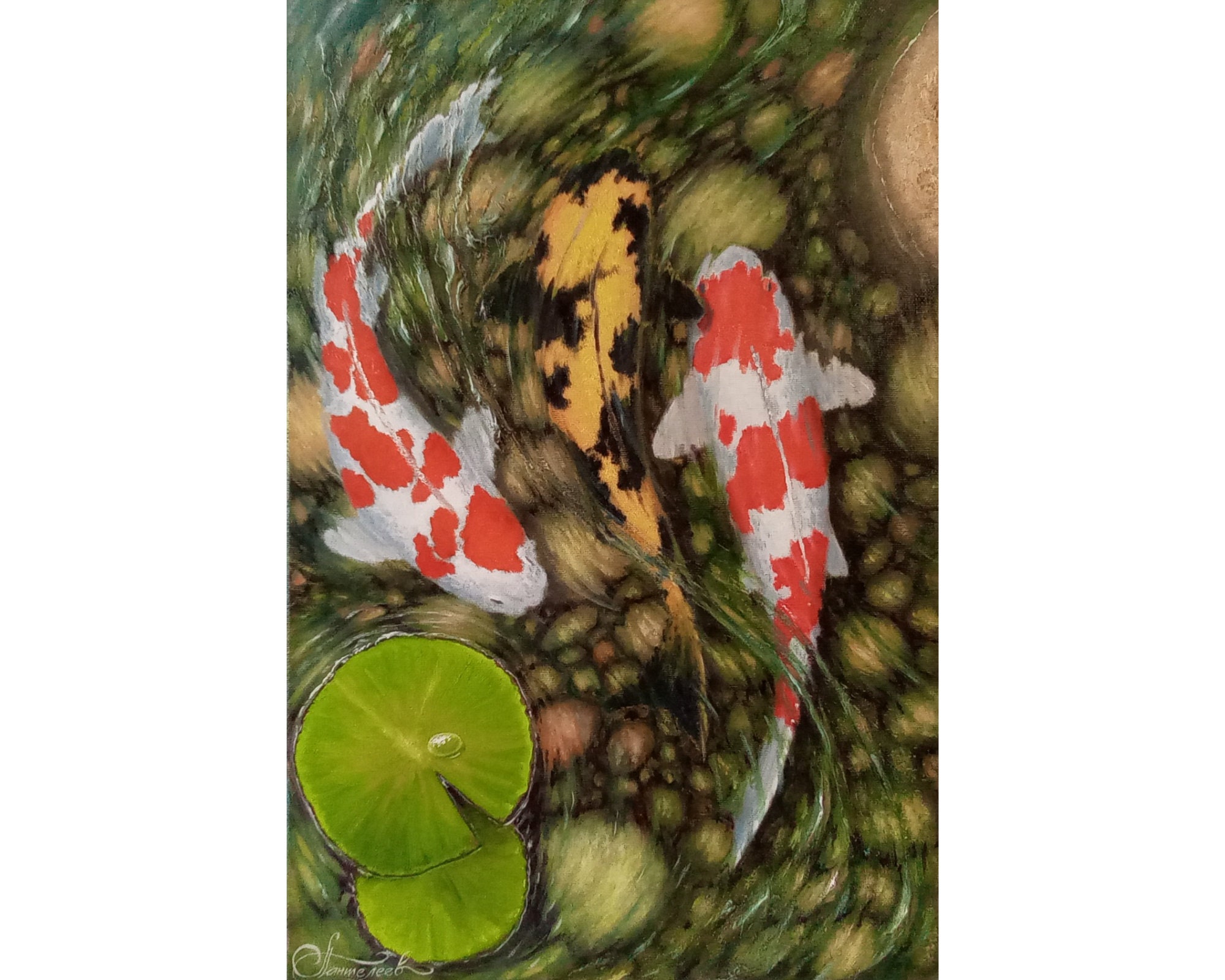 Impressions No 1 Koi Pond Nevermore Illustrations Digital Art Animals Birds Fish Aquatic Life Fish Tropical Fish Artpal